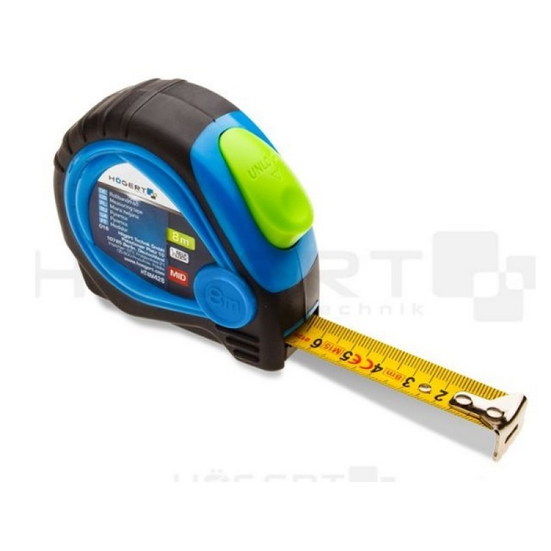 II класс точности лента имеет износостойкое нейлоновое покрытие, увеличивающее прочность и защищающее шкалу от стирания блокировка сматывания ленты для облегчения измерений лента оснащена зацепом с магнитным фиксатором в виде пластинки, зажатой двумя заклепками обрезиненный корпус гарантирует удобный захват гибкая стальная лента толщиной 0.12 мм с четкой шкалой автоматический механизм сматывания ленты эргономичная и легкая зажим для крепления рулетки на поясе Рулетка 5м х 25мм от производителя Hoegert technik, артикул: HT4M426, каталог Инструмент измерительный . Этот товар вы можете приобрести в магазине ПрототиП, ресурс Prototip.by по выгодной цене.