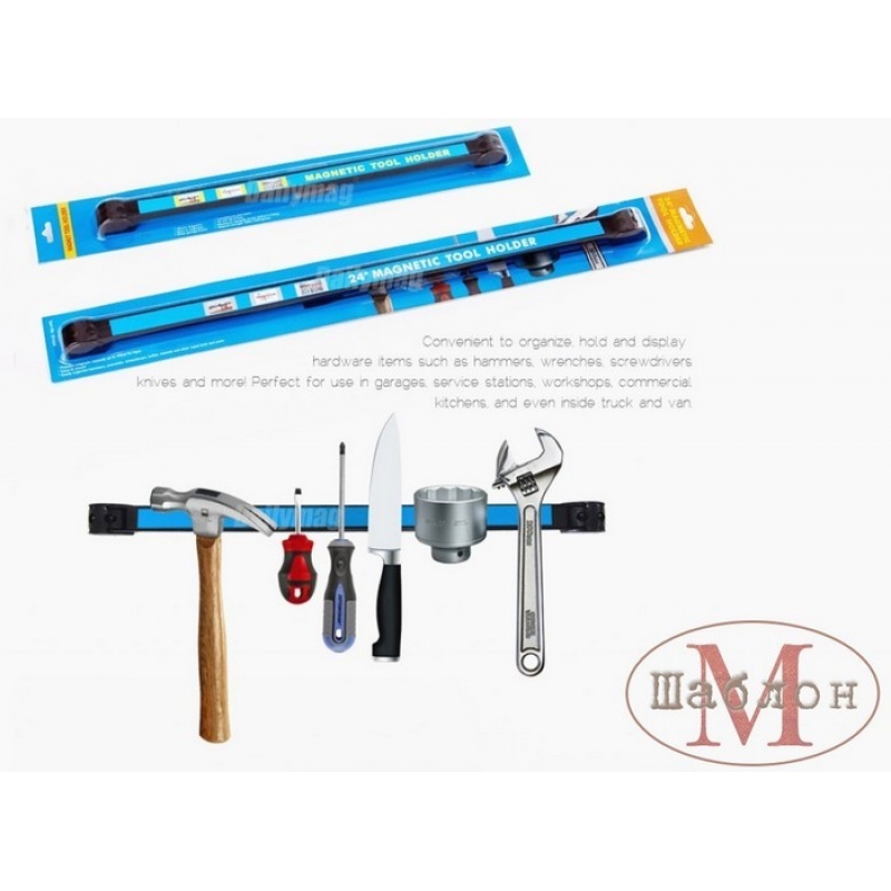 Магнитная рейка длиной 600 мм для инструмента. Магнитный держатель легко устанавливается на стену и позволяет всегда иметь под рукой часто используемый инструмент. Используйте его, чтобы держать ножи, гаечный ключ, плоскогубцы, ножницы, инструменты, ключи, и др. что вы можете представить. Длина рейки с крепежом 650 мм. 24 дюймовый магнитный держатель инструмента М24 от бренда Шаблон М, артикул: М24, каталог Мебельные шаблоны . Этот продукт вы можете приобрести или заказать в магазине Prototip.by по выгодной цене.
