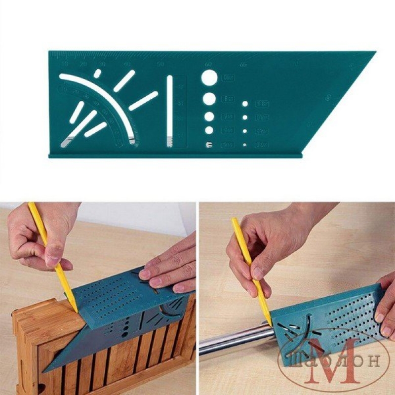 Угловая монтажная 3D линейка из пластика имеет большие возможности применения. Идеально подходит для трехмерной маркировки, измерения 45 и 90 градусов дополнительная шкала для измерения углов от 0-90 градусов. Может использоваться в качестве маркировки параллельных линий, легко провести измерение углов и перенести их на балки, трубы и другие трёхмерные предметы. Метрическая шкала, отверстия для определения диаметра свёрл. Удобная и простая в использовании 3D линейка поможет вам более эффективно работать и сэкономит время при столярных работах. 3D линейка 3-DУ от производителя Шаблон М, артикул: 3-DУ, раздел Мебельные шаблоны . Этот товар вы можете купить в магазине Prototip.by по доступной цене.