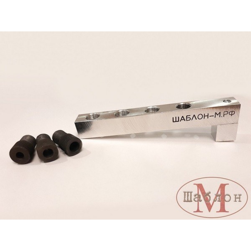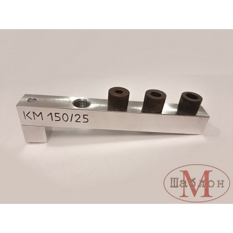 Каждому сборщику мебели требуется инструмент, который помогает в любимой работе. Таким инструментом может стать кондуктор (артикул КМ150/25) с четырьмя резьбовыми отверстиями для сменных втулок. Кондуктор отлично подойдет для работы с ЛДПС, МДФ и дерево. Кондуктор изготовлен из дюралюминия имеет шаг 25мм, в комплекте три втулки с резьбой (М12х1,25) для отверстий 5мм, 7мм, 8мм.