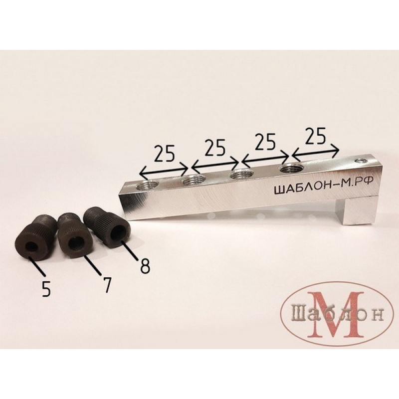 *Производитель оставляет за собой право вносить изменения в конструкцию изделия без предварительного уведомления. Изображения товара может отличаться от его реального внешнего вида. Кондуктор КМ-150/25 со съёмными втулками (1 втулка 5мм, 1 втулка 7мм, 1 втулка 8мм) от бренда Шаблон М, артикул: КМ150/25, категория Мебельные шаблоны . Этот товар вы можете приобрести в магазине ПрототиП по наилучшей цене.