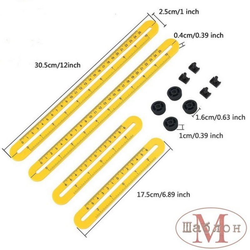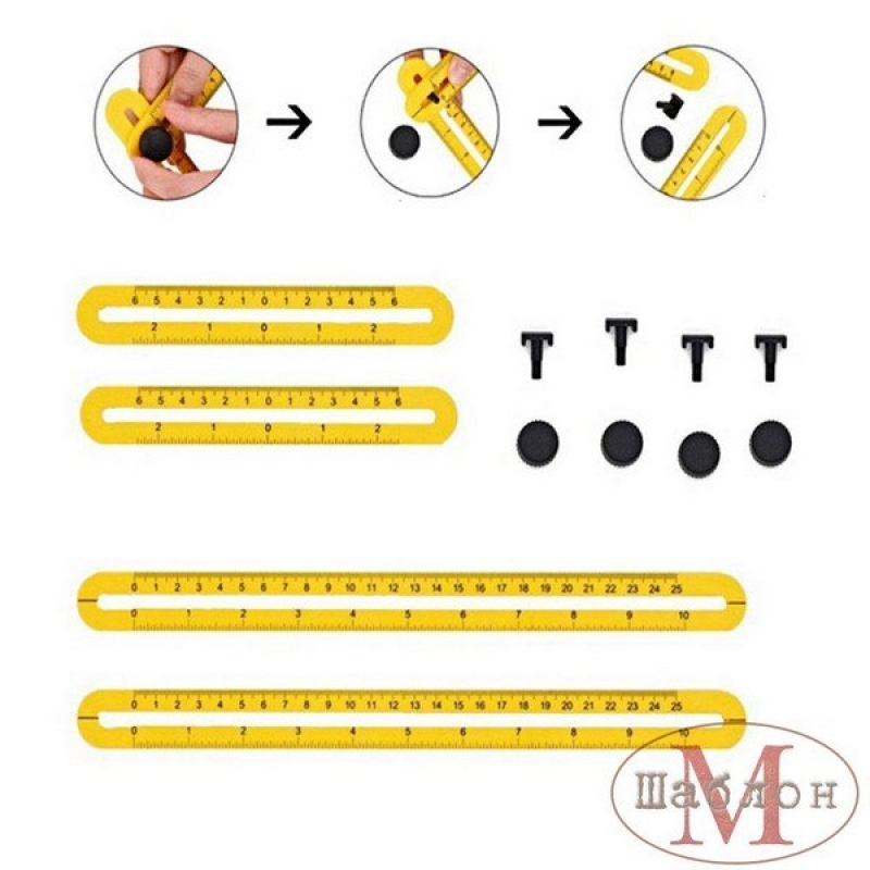 Отличный инструмент для создания сложных углов. Позволяет легко перенести размер с предмета на заготовку и закрепить под любым углом используя ШЛ-1 как трафарет. Можно использовать для разметки кирпичей, плитки, ДСП и других материалов. Линейка имеет разметку в дюймах и метрических измерениях. Линейка-шаблон для измерения углов ШЛ-1 от бренда Шаблон М, артикул: ШЛ-1, категория Мебельные шаблоны . Этот продукт вы можете купить в магазине Prototip.by по выгодной цене.