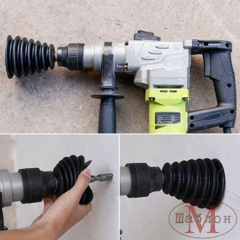 Резиновый пылеулавливающий чехол устанавливается на дрель или перфоратор для сбора пыли и мелких частиц при сверление отверстий. Это незамысловатое устройство позволит производить ремонтные работы не разбрасывая мусор в разные стороны, предохраняя от пыли. Комлект состоит из резинового конуса и пластикого стопорного кольца которое крепится на сверло. Пыле защищающий чехол ПЧ от производителя Шаблон М, артикул: ПЧ, раздел Мебельные шаблоны . Этот продукт вы можете купить в магазине ПрототиП по выгодной цене.