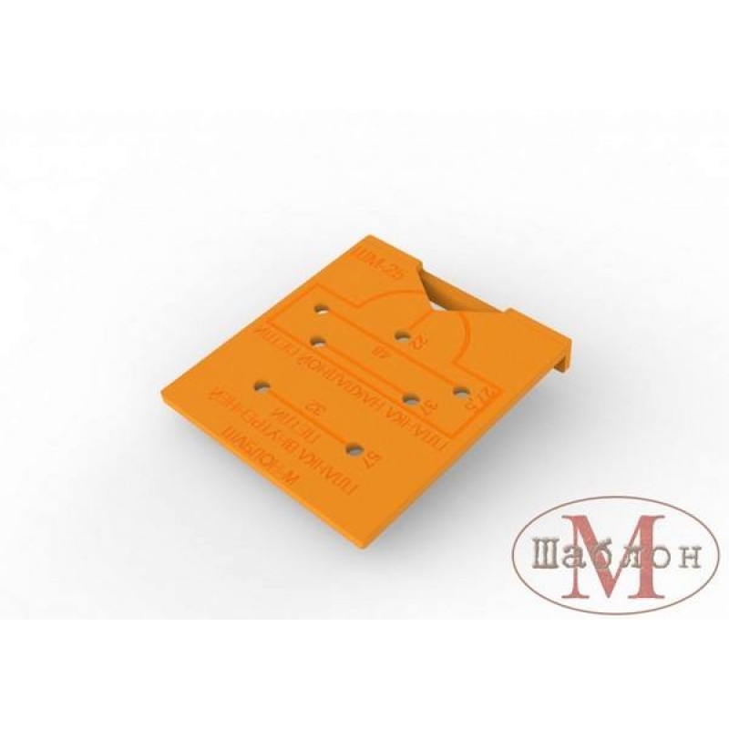 Изготовлен ШМ-25 из очень прочного качественного пластика, который обладает высоким уровнем прочности: он не сломается и не треснет при эксплуатации. Но, несмотря на это, производитель не рекомендует совершать непосредственный монтаж (сверлить отверстия) через шаблон – от такой нагрузки сократится срок службы изделия.