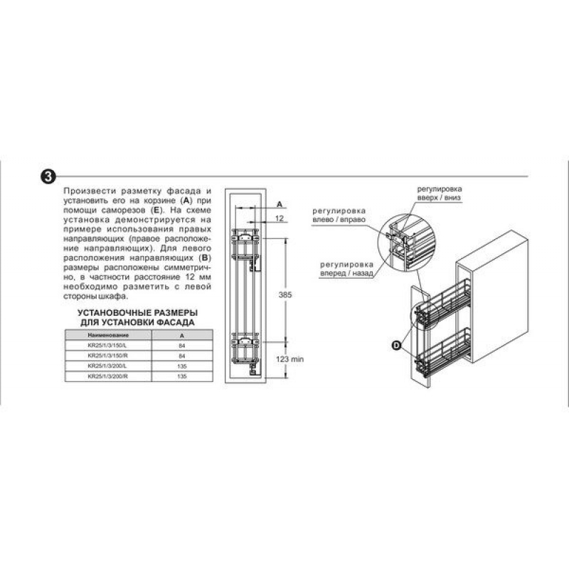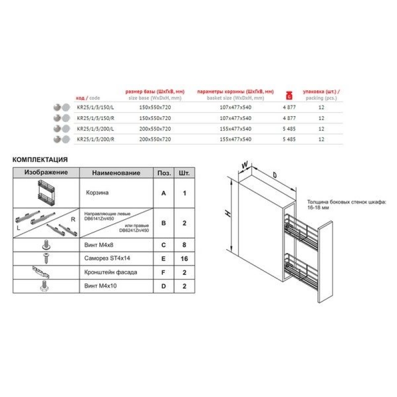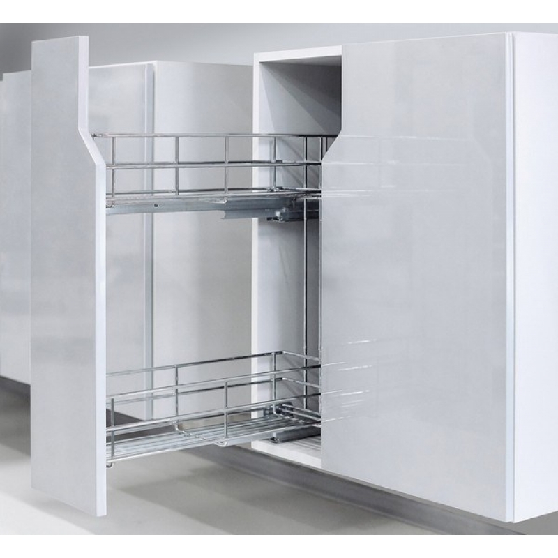 Современная модель бутылочницы Bella с системой выдвижения нового поколения с амортизацией и синхронизацией бокового крепления предназначена для удобного и безопасного хранения бутылок разной высоты на нижней сетке и более мелких на верхней. Изящная и стильная, модель займет узкие ниши в шкафах или пространствах в нижних модулях гарнитура. Такая сетчатая конструкция может стать хранилищем для различных бутылок с маслом, уксусом, соусами в зоне приготовления пищи, либо чистящих средств в зоне мойки, а также может заменить мини-бар, если использовать ее для хранения бутылок с алкоголем. Основное преимущество модели – стабильный, уверенный и в то же время очень мягкий и бесшумный ход, который обеспечивают современные направляющие скрытого монтажа с амортизацией. Бутылочница обладает европейским дизайном с выверенными габаритами сеток, расположением и толщиной прутков – все соединения четко продуманы и созданы для максимального комфорта пользователей. Модель предложена в популярном покрытии «Хром полированный», которое выполняет не только эстетическую, но и защитную функцию – обеспечивает высокие антикоррозионные свойства даже в условиях повышенной влажности. Модель представлена в 4-х вариантах: для модулей размером 150 мм и 200 мм с левым или правым расположением направляющих. Имеет жесткое крепление к фасаду. Нагрузка 15 кг для модели шириной 150 мм и 20 кг – для 200 мм соответственно. Выдвижная корзина для кухни BELLA KR25/1/3/200/L от производителя Boyard, артикул: KR25/1/3/200/L, каталог Многоуровневые корзины. Этот товар вы можете купить или заказать в магазине ПрототиП по доступной цене.
