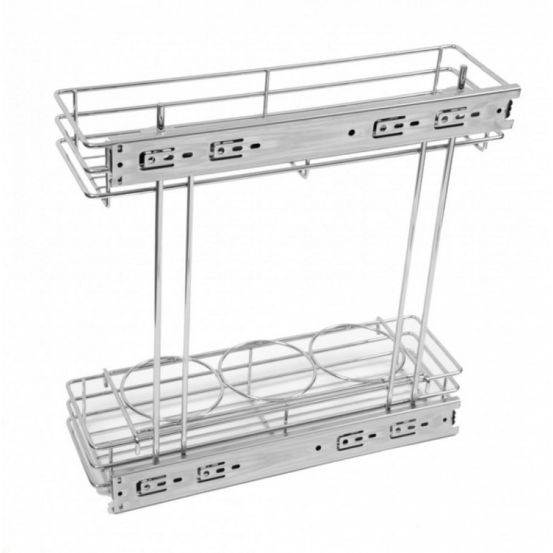 Вместительная выдвижная корзина предназначена для рациональной организации нижних модулей гарнитура в зоне хранения продуктов. «Первый этаж» двухуровневой системы имеет удобные ограничители – проволочные круги для упорядоченного и безопасного хранения банок, бутылок или сосудов, небольших кастрюль. Каждая банка, находясь на своем месте – в своей окружности, не упадет, не сместится, не разобьется. По бокам нижнего уровня есть ограничители для хранения небольших емкостей или коробочек, например, со специями, кулинарными порошками, приправами. На верхнем уровне корзины можно разместить пакетики с крупами, небольшие баночки с продуктами, травы в пакетиках или коробочках, чай, кофе и т.п. За счет полного выдвижения каждый уголок корзины одинаково удобен в ситуации размещения или доставания продуктов. Прочная проволока сохраняет свою форму на протяжении всего срока эксплуатации, поэтому, даже при хранении тяжелых продуктов, проволочный «рисунок» корзины не деформируется со временем и будет отлично выполнять свои функции. Для удобства производителей весь необходимый для конструкции крепеж имеется в комплекте. Выдвижная корзина для кухни KR12/1/1/200 от производителя Boyard, артикул: KR12/1/1/200, каталог Многоуровневые корзины. Этот продукт вы можете приобрести в магазине Prototip.by по прекрасной цене.