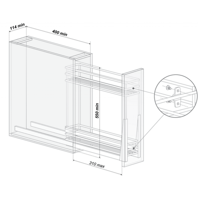 Выдвижная корзина шириной 150 мм предназначена для заполнения узких ниш в кухонных шкафах, тумбах или колоннах. Внутреннее пространство корзины узкое и высокое, что делает возможным ее использование в роли бутылочницы: на нижней полке прекрасно поместятся бутылки разной высоты, а верхняя полка послужит хранилищем для невысоких бутылочек, сосудов, аксессуаров, необходимых в кухонном быту мелочей. Неширокая, корзина может быть установлена рядом с другими выдвижными сетчатыми решениями. Размещенная в зоне мойки, конструкция станет вместилищем набора чистящих и моющих средств, а также аксессуаров для уборки. Этот тип сетчатой корзины позволяет сделать доступным пристенное пространство ограниченных ниш. Раньше, для того, чтобы достать самую дальнюю бутылку или емкость, приходилось вытаскивать все до единой впереди стоящие бутылки. С появлением такой корзины полного выдвижения на извлечение самого удаленного предмета тратится пара секунд. Корзина имеет современное цветовое покрытие – полированный хром, с которым гармонирует серый цвет крепления. Для простого и быстрого монтажа все крепежные элементы уже вложены в комплект. Выдвижная корзина для кухни KR15/2/1/150 от производителя Boyard, артикул: KR15/2/1/150, каталог Многоуровневые корзины. Этот продукт вы можете купить или заказать в магазине ПрототиП по недорогой цене.