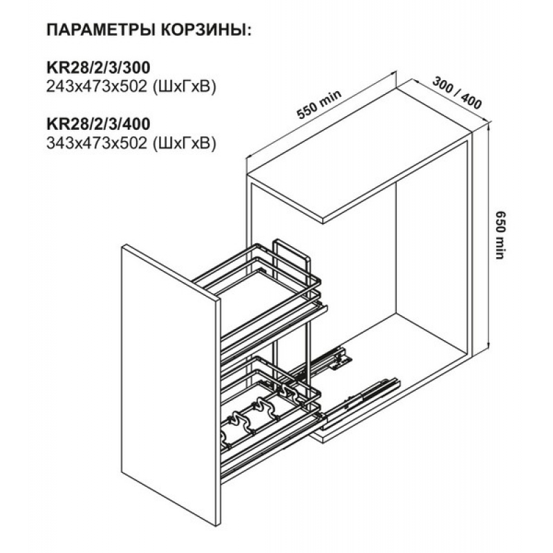 Выдвижная двухуровневая корзина QUADRA – стильное решение для эффективного хранения бытовой или кухонной утвари в модулях шириной 300 и 400 мм. Оба этажа обладают сплошным дном с антискользящим покрытием стильного графитового цвета. Дно можно легко снять для чистки и мойки. В нижнем ярусе модели предусмотрены дополнительные съемные делители для устойчивого хранения небольших емкостей или пакетов с сыпучими продуктами. Система выдерживает высокую нагрузку – 30 кг на оба яруса и рассчитана на надежную работу на протяжении 50000 циклов открывания/закрывания. Модель устанавливается на дно модуля с помощью направляющих нового поколения с синхронизацией и доведением длиной 450 мм. Модель обладает стильным европейским дизайном и отлично дополнит интерьеры в стилях хай-тек, минимализм, контемпорари, лофт. Выдвижная корзина для кухни QUADRA KR28/2/3/300 от производителя Boyard, артикул: KR28/2/3/300, раздел Многоуровневые корзины. Этот продукт вы можете купить в магазине ПрототиП, ресурс Prototip.by по прекрасной цене.