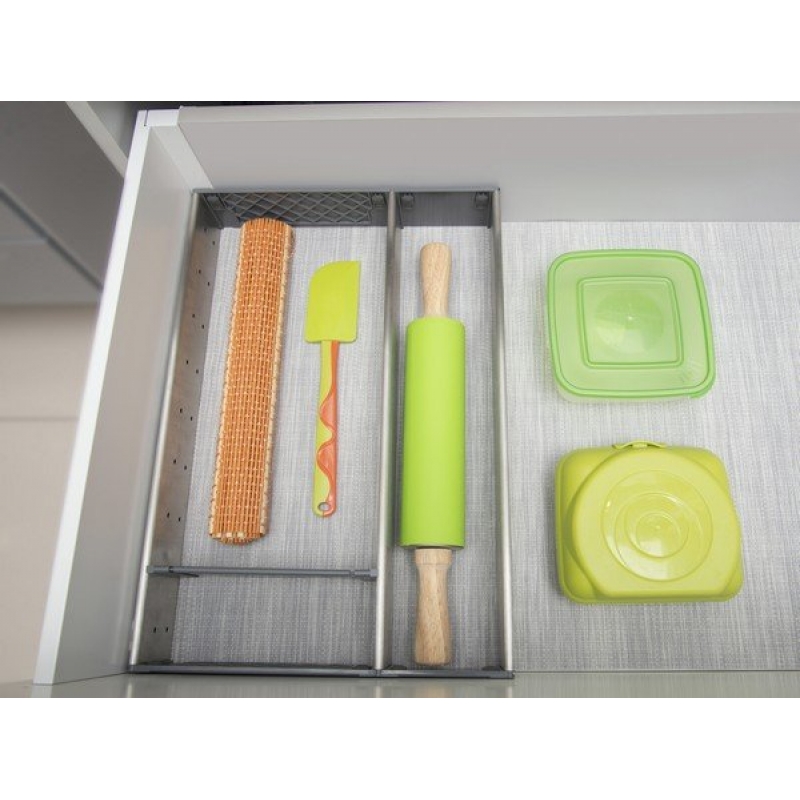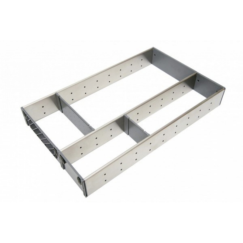 Удобные поддоны-делители из нержавеющей стали для организации внутреннего пространства выдвижных ящиков. Поддоны состоят из нескольких ячеек прямоугольной формы разной ширины. Конфигурация поддонов позволяет обеспечить эргономичное хранение разнообразных предметов: габаритных кухонных принадлежностей (половников, лопаток, пресса для чеснока, закаточной машинки для банок и пр.), инструментов. Поддоны РС06 могут быть дополнением домашней и промышленной мебели, могут размещаться в ящиках как самостоятельно, так и в комплекте с другими поддонами, например с РС04 и РС05. Комбинации из поддонов РС04, РС05, РС06 будут особенно актуальны для широких мебельных модулей.