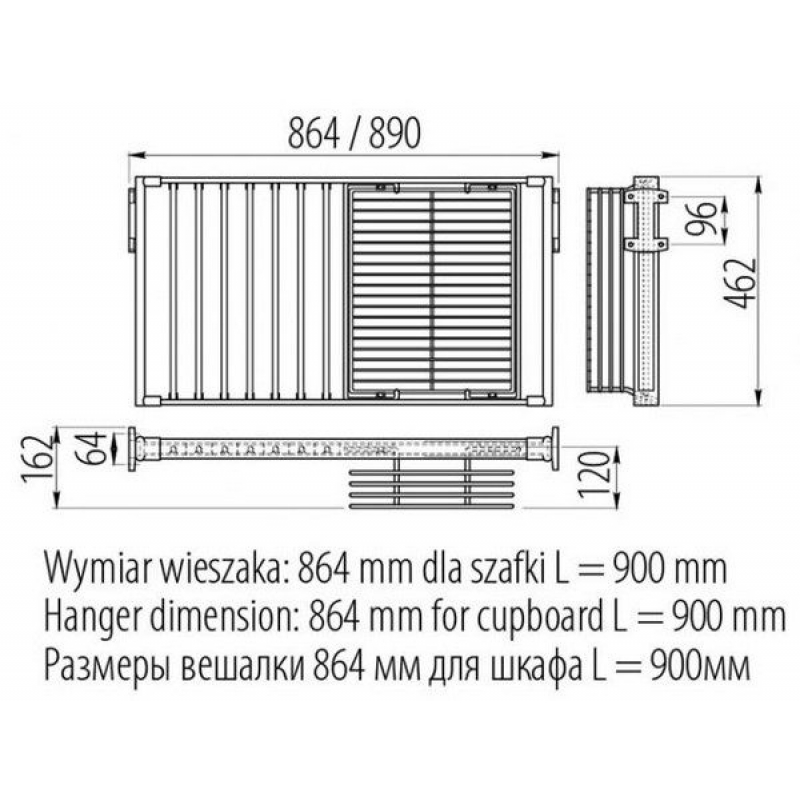 Вешалка для брюк + корзина 864x460x170 WW-WSPK90 - система хранения одежды, состоящая из удобного держателя и специальной емкости. КОМПЛЕКТАЦИЯ Шариковые направляющие неполного выдвижения – 2 шт. ПРЕИМУЩЕСТВА Благодаря направляющим, вешалка легко выдвигается из шкафа и убирается обратно. Противоскользящее покрытие прутьев исключает случайное падение одежды. Шесть перекладин позволяют хранить одновременно несколько брюк. Вместительная корзина обеспечивает хранение вещей, не требующих глажки. Вешалка для брюк + корзина 864x460x170 WW-WSPK90 от бренда GTV, артикул: WW-WSPK90-01, каталог Выдвижные вешалки и штанги. Этот продукт вы можете приобрести или заказать в магазине ПрототиП, ресурс Prototip.by по прекрасной цене.