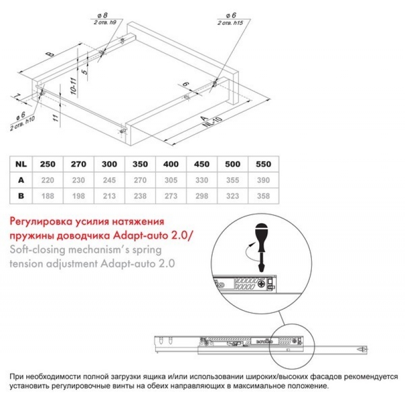 Направляющие B-Slide DB8884 скрытого монтажа частичного выдвижения повышенного уровня качества и комфорта сочетают в себе инженерные наработки последних лет и новаторские идеи компании BOYARD. Ключевыми характеристиками B-Slide являются: Более длительный срок эксплуатации : подтвержденные лабораторией SGS 80 000 циклов «открывания-закрывания». Европейские присадочные размеры. Adapt-auto — адаптивная регулировка усилия работы доводчика — уникальное технологическое решение BOYARD, которое позволяет легко и быстро «в домашних условиях» ослабить или усилить натяжение пружины доводчика. Опция Adapt-auto незаменима в случае нестандартной нагрузки, когда неглубокий ящик имеет высокий и тяжелый фасад, или же когда груз внутри ящика распределен ближе к фасаду. В случае многолетней активной эксплуатации мебели пружину доводчика можно подтянуть и доводчик будет работать как в день установки направляющих. Усиливать или облегчать натяжение пружины пользователи мебели могут самостоятельно, выставив подходящее положение регулировочного винта в доводчике при помощи обычной крестовой отвертки. Защищенный корпус доводчика от пыли и попадания мелкого мусора, который возникает при монтаже мебели. Опция автовзвода В-back — самопостановка доводчика при сбросе. Механизм позволяет установить подвижную часть направляющих в исходное положение — соединить ее с контактным элементом доводчика в случае, если произошел сброс. Направляющие скрытого монтажа В-slide предусматривают версию полного и частичного выдвижения. Механизмы с артикулами, заканчивающимися на нечетные цифры DB8881, DB8883 — полного выдвижения. Четные артикулы DB8882, DB8884 говорят о неполном выдвижении. Направляющие механизмы В-Slide DB8884Zn/450 от производителя Boyard, артикул: DB8884Zn/450, категория Направляющие шариковые. Этот товар вы можете купить или заказать в магазине ПрототиП по прекрасной цене.