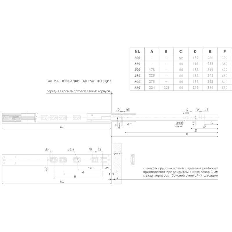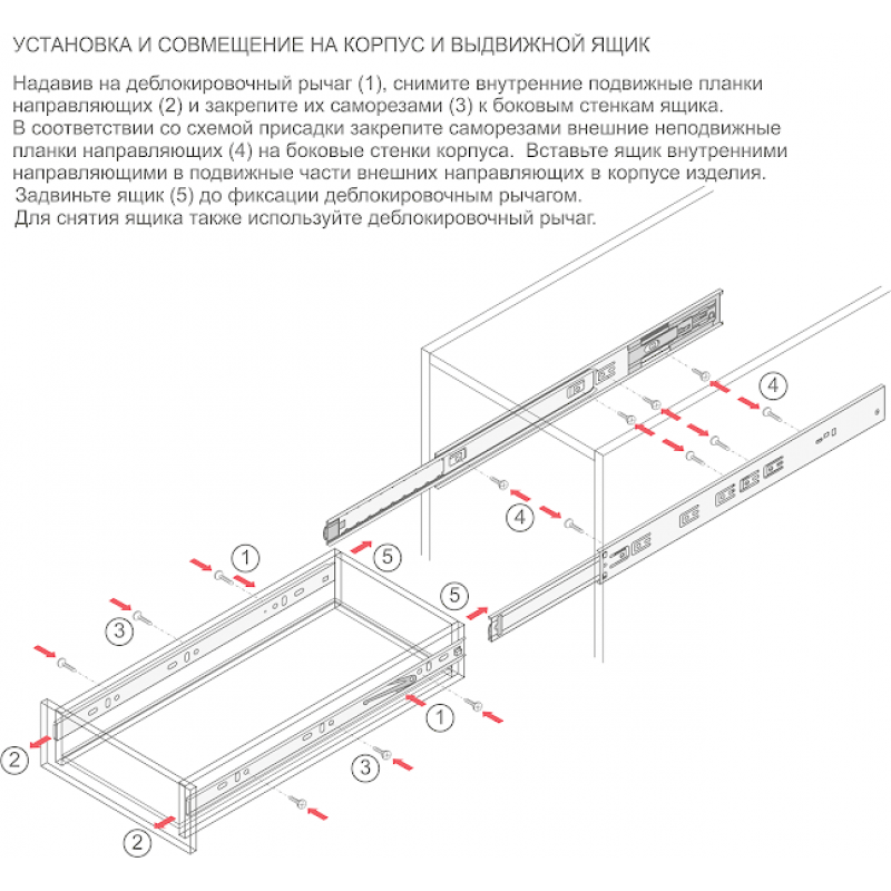 Главное достоинство модели DB4503 – наличие механизма Push-to-Open, благодаря которому ящики открываются путем простого нажатия на фасад. Опция Push-to-Open позволяет устанавливать направляющие DB4503 на популярные сегодня ящики с фасадами без мебельных ручек. Конкурентным преимуществом также является возможность полного выдвижения ящика, что гарантирует максимальный доступ к содержимому ящика. Шарики и синтетическая смазка обеспечивают мягкое и плавное движение ящика. Модель обладает высокой грузоподъемностью: выдвижные ящики с направляющими DB4503 способны выдерживать нагрузку 30 кг. Для удобства производителя мебели в ассортименте BOYARD есть направляющие DB4503 с разной монтажной длиной – от 300 до 550 мм. Направляющие DB4503 изготовлены из стали, отличаются износостойкостью и надежностью в эксплуатации. Системы рассчитаны на 50 000 открываний и закрываний ящика. При всех достоинствах шариковые направляющие DB4503 имеют доступную стоимость. Установленные в мебель эконом-класса, системы выдвижения DB4503, без удорожания мебели, значительно повышают ее потребительские характеристики – функционал и качество движения. Шариковые направляющие DB4503 – легкий путь к комфортной мебели! Шариковые направляющие DB4503Zn/550 от бренда Boyard, артикул: DB4503Zn/550, каталог Направляющие шариковые. Этот продукт вы можете приобрести в магазине Prototip.by по хорошей цене.