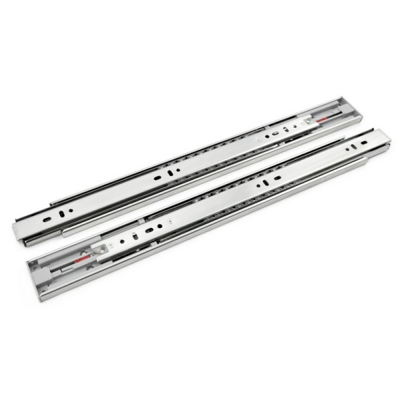 Шариковые направляющие DB4515 – решение для стильной и функциональной мебели, которая не предполагает установку ручек. Направляющие плавно выдвигают ящик от легкого нажатия на любую точку фасада. Ключевая особенность направляющих – инновационный механизм толкателя: при случайном открытии ящика без нажатия подвижная часть направляющей соскакивает с механизма и свободно выдвигается. Для установки ящика в исходное положение без повреждений достаточно задвинуть его обратно. Модель обладает оптимальной грузоподъёмностью до 30 кг и гарантирует бесперебойную работу механизма на протяжении 50 000 циклов. Шариковые направляющие PUSH DB4515Zn/400 от бренда Boyard, артикул: DB4515Zn/400, раздел Направляющие шариковые. Этот продукт вы можете купить в магазине Prototip.by по наилучшей цене.