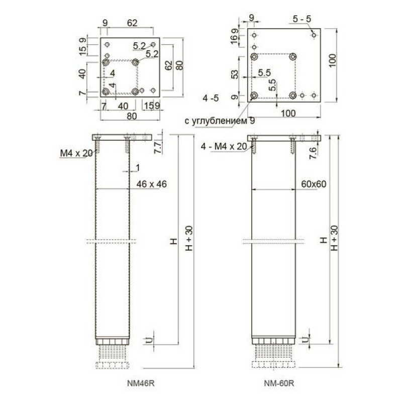 Опора для стола квадратная 1100х60х60мм регулируемая, инокс от бренда GTV, артикул: NM-60R1100-06, категория Ножки для столов. Этот продукт вы можете приобрести или заказать в магазине ПрототиП по хорошей цене.