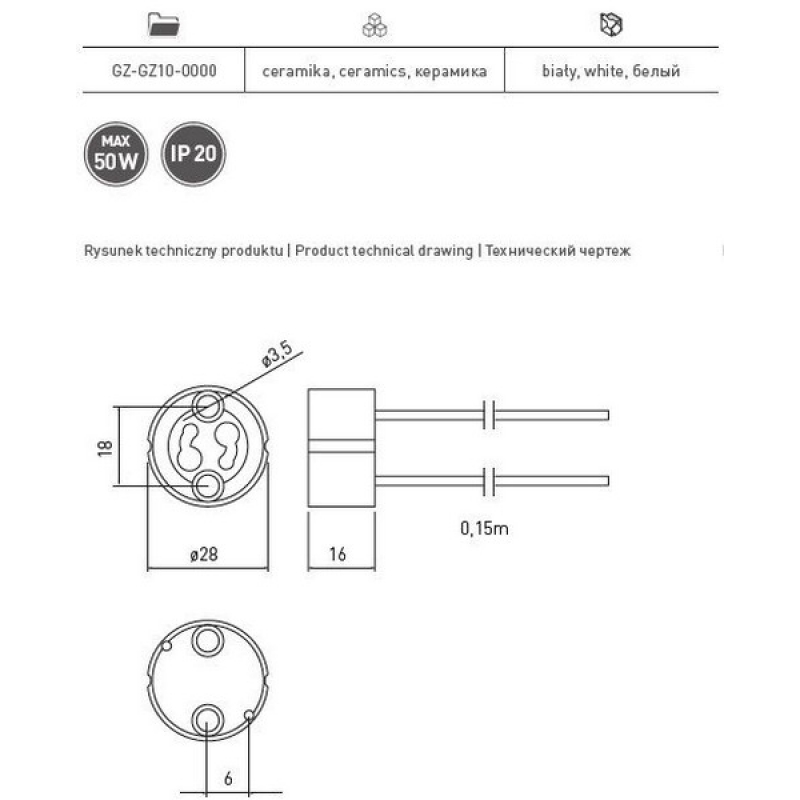 Описание товара Патрон к галогенным лампам GZ10/GU10 - необходимый электротехнический элемент, посредством которого галогенная лампа соответствующего типа подсоединяется к электросети. Патрон к галогенным лампам GZ10/GU10 от производителя GTV, артикул: GZ-GZ10-0000, каталог Лампы. Этот товар вы можете приобрести в магазине ПрототиП, ресурс Prototip.by по наилучшей цене.