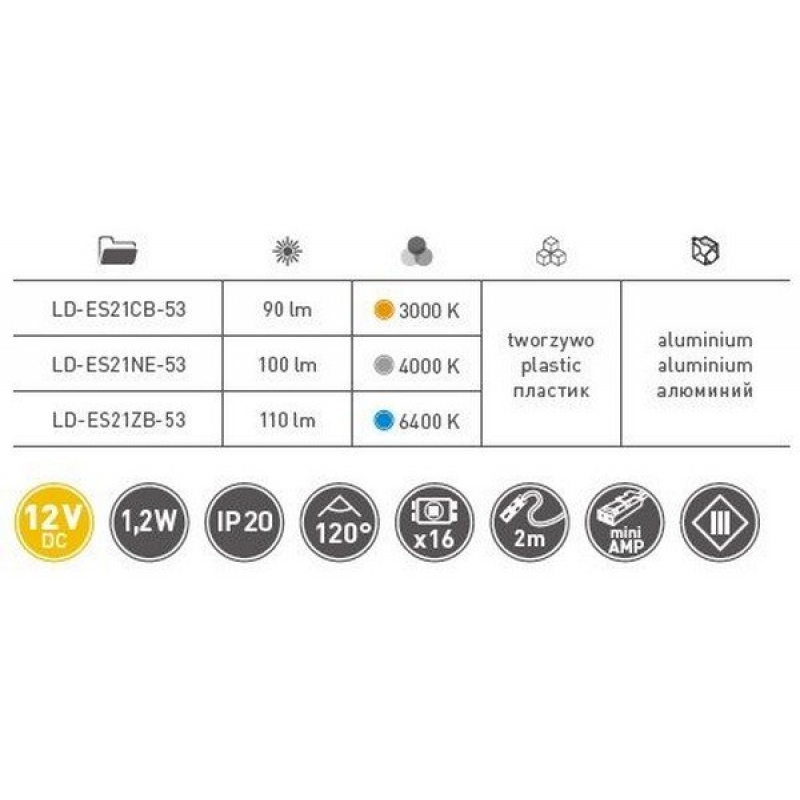 Точечный накладной светодиодный светильник Estella, квадрат, 12V, 1,2W, 16 диодов, холодный свет, алюминий от производителя GTV, артикул: LD-ES21ZB-53N, категория Накладные светильники светодиодные. Этот товар вы можете приобрести в магазине Prototip.by по выгодной цене.