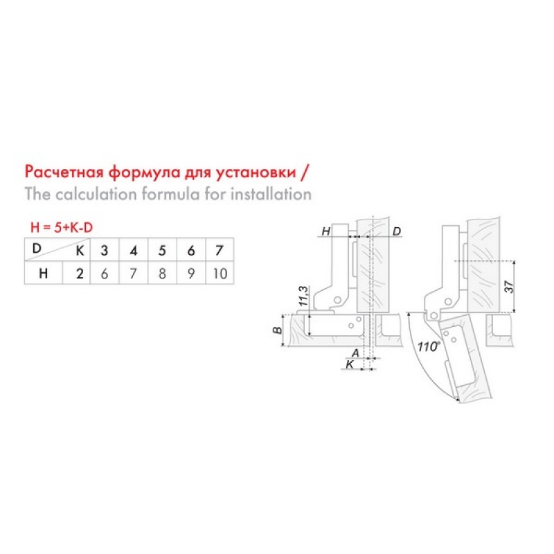 | Угол открывания, ° | 110 |