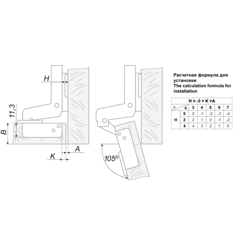 | Угол открывания, ° | 105 |