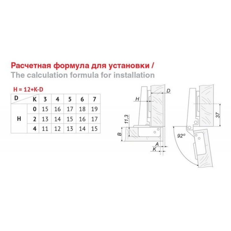 | Угол открывания, ° | 92 |