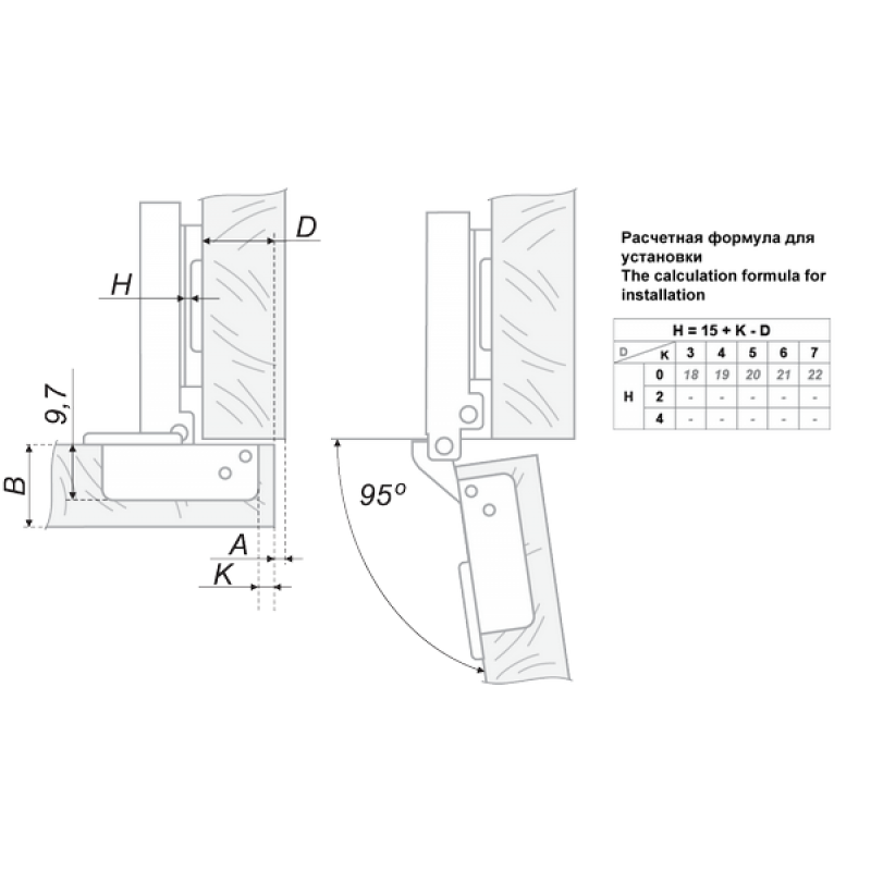 | Комплектация | Петля и ответная планка. Евровинты, вкрученные в планку, в комплекте. Чашка без крепежа. |