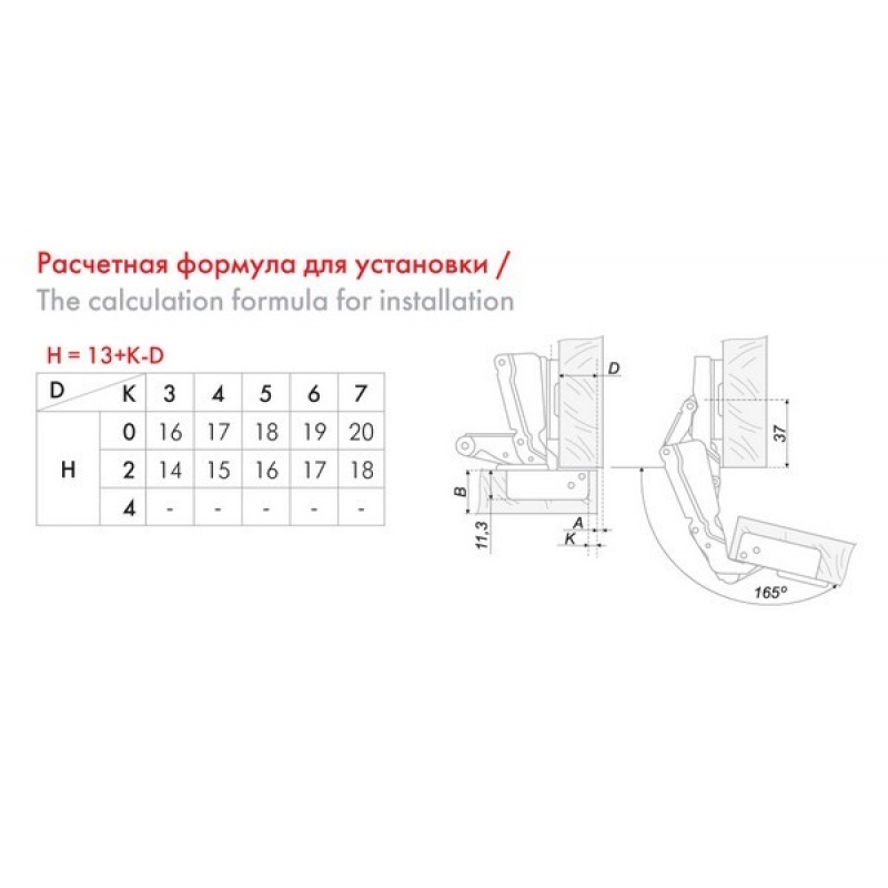 | Угол открывания, ° | 165 |