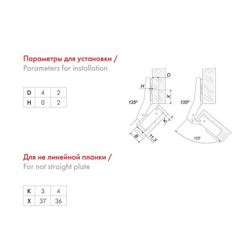 Модель для угловых модулей, с углом установки 135° относительно внутренней поверхности боковой стенки. Модель предназначена для крепления фасадов толщиной до 22 мм и имеет все характеристики современной петли – европейский дизайн и улучшенный функционал. Плавная регулировка фасада по глубине модуля осуществляется путем ослабления крепежного винта, изменения положения корпуса петли и фиксации винта. H642 – одноходовая петля, она открывается и закрывается в одно действие. Петли NEO можно укомплектовать разными видами планок, планки приобретаются отдельно. Модель входит в линейку современных петель NEO, которая создана в соответствии с международными стандартами для производителей качественной мебели сегментов «средний» и «средний+». Все петли NEO обладают современным дизайном и улучшенными техническими характеристиками: комфортный амортизатор с оптимальным углом доведения, быстрый и простой монтаж Clip-on, 80 000 циклов открывания/закрывания. Мебельная петля LINE 45° Н642C02 без ответной планки (Boyard) от бренда Boyard, артикул: Н642C02, каталог Петли для ДСП, МДФ, массив. Этот продукт вы можете приобрести в магазине Prototip.by по недорогой цене.
