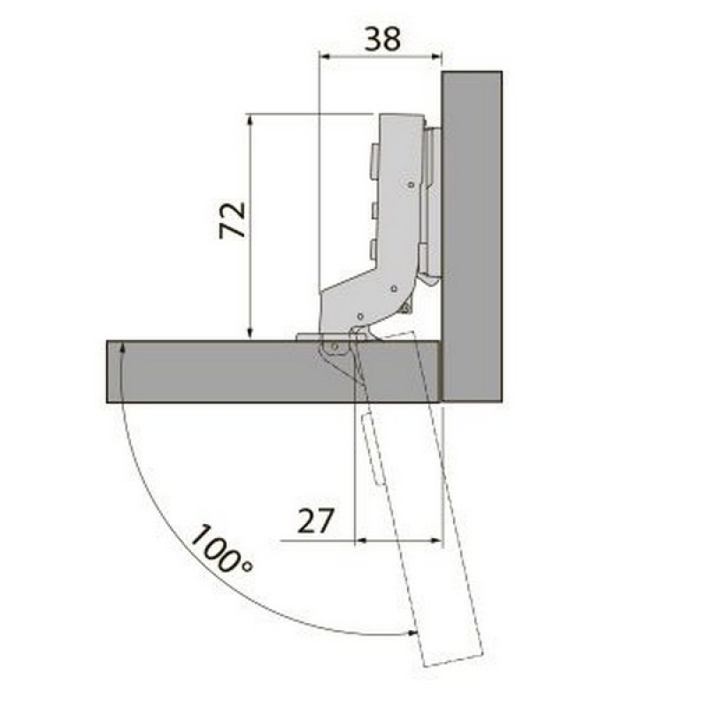 | Угол открывания, ° | 100 |