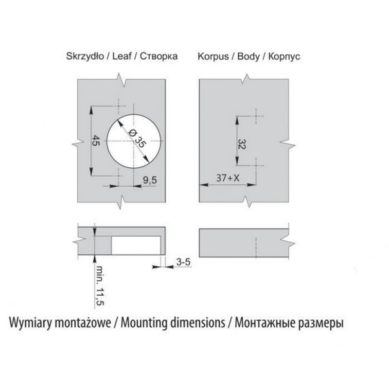 | Присадки (межцентровое расстояние), мм | 45 |