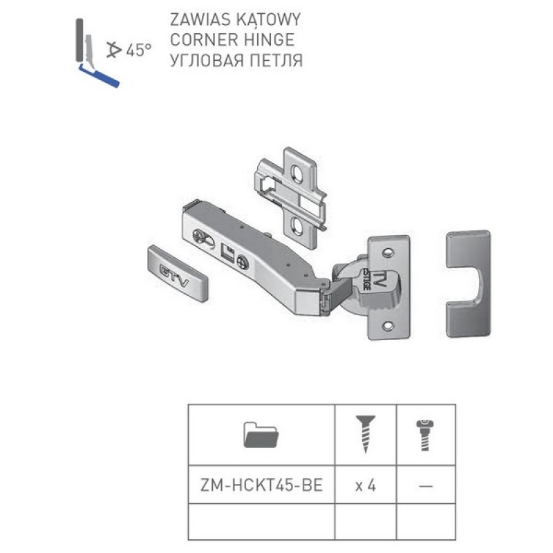 * Петля GTV ZM-НСKT 45 градусов угловая самозакрывающаяся с планкой от производителя GTV, артикул: ZM-НСKT45-BE, раздел Петли для ДСП, МДФ, массив. Этот товар вы можете приобрести или заказать в магазине ПрототиП, ресурс Prototip.by по недорогой цене.