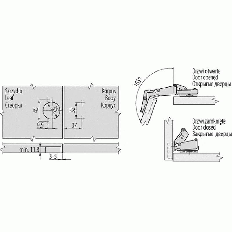 * Петля накладная GTV 165 градусов с планкой H-2 с евро, 45мм от бренда GTV, артикул: ZP-KT165H2ZE, раздел Петли для ДСП, МДФ, массив. Этот продукт вы можете купить в магазине ПрототиП по наилучшей цене.