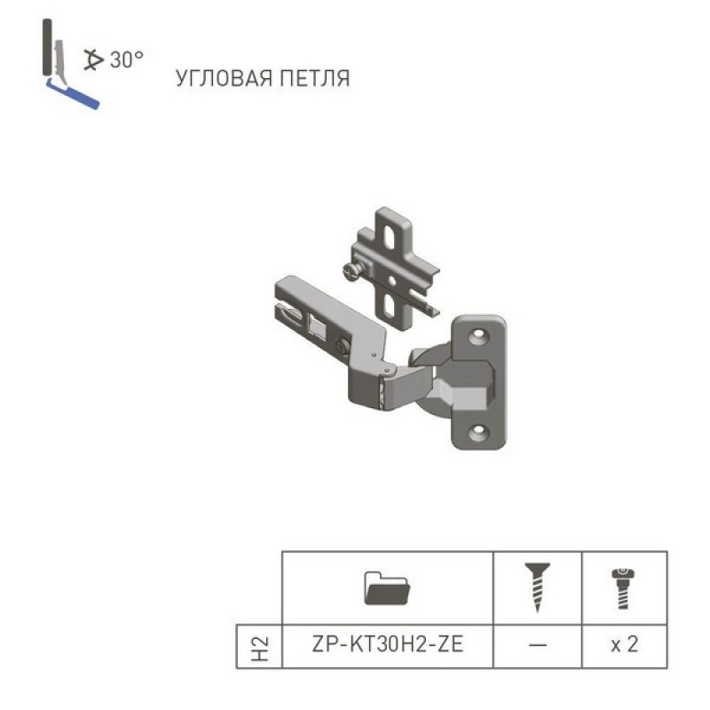 * Петля накладная GTV 30 градусов с планкой H-2 с евро, 45мм от бренда GTV, артикул: ZP-KT30H2-ZE, раздел Петли для ДСП, МДФ, массив. Этот продукт вы можете купить или заказать в магазине ПрототиП, ресурс Prototip.by по наилучшей цене.