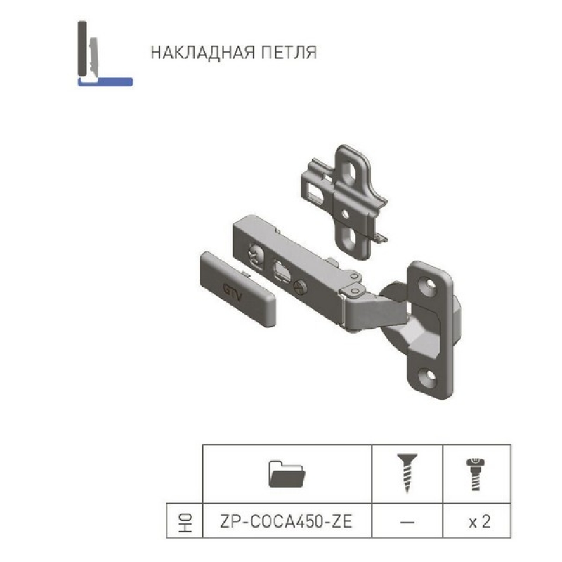 * Петля накладная GTV ZP-COCA450-ZE клиповая без пружины, H-0, 45мм с евро от бренда GTV, артикул: ZP-COCA450-ZE, раздел Петли для ДСП, МДФ, массив. Этот продукт вы можете приобрести в магазине Prototip.by по хорошей цене.