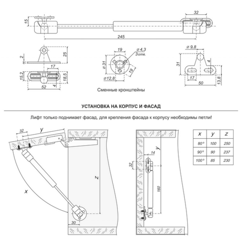 Лифт газовый (газовая пружина) для корпусной мебели. Сменный кронштейн под 32 мм и 16 мм. Кронштейны двух видов: для установки на фасады из массива дерева или ДСП и металлические рамы. Газовый лифт GL102GR/80/3 от производителя Boyard, артикул: GL102GR/80/3, каталог Газовые лифты. Этот товар вы можете купить или заказать в магазине ПрототиП, ресурс Prototip.by по недорогой цене.