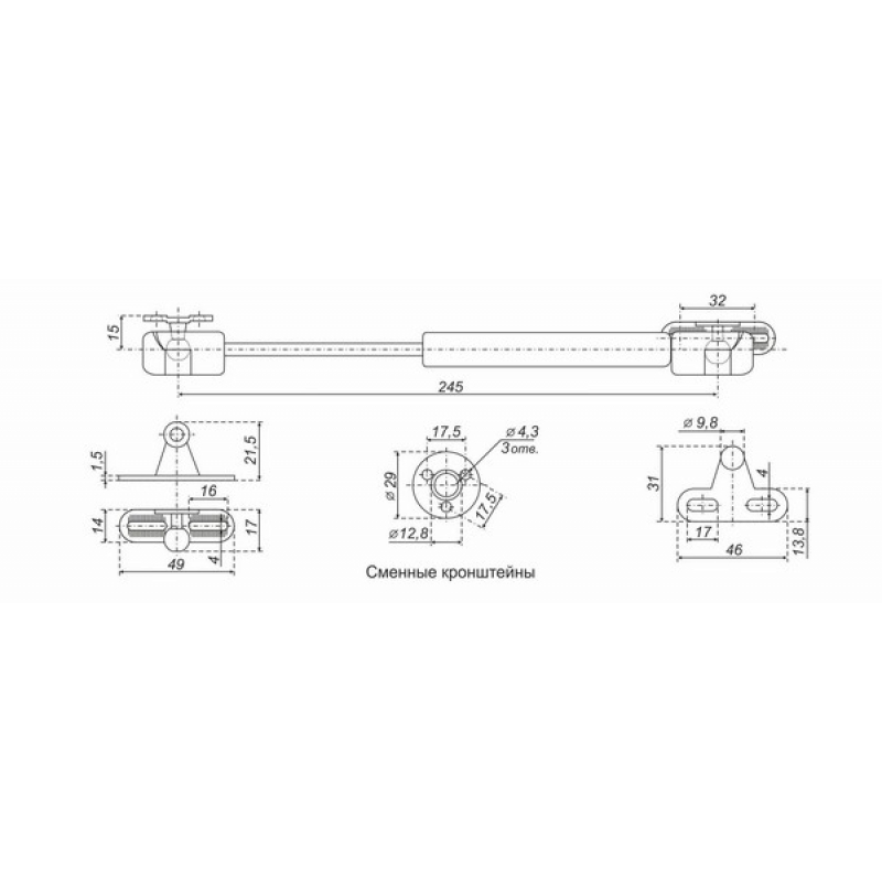 GL105 – лифт газовый для фасадов верхних баз корпусной мебели. В комплект GL105 входят инструкция, саморезы 5шт, кронштейны 3шт – один стационарный и два сменных для установки на фасады из массива дерева или ДСП и алюминиевые рамки. Газовый лифт соединяется с кронштейнами с помощью пластиковых фиксаторов. GL105 представлен в 3 моделях с нагрузкой: 5кг, 8кг и 10кг. Эксплуатация рекомендуется в условиях жилых помещений. Модель GL105 применима в мебели различного назначения: кухонной, гостиной, спальной, детской и обеспечивает удобное открывание фасадов вверх при максимально доступной стоимости. Газовый лифт GL105GR/100/3 от бренда Boyard, артикул: GL105GR/100/3, категория Газовые лифты. Этот товар вы можете купить в магазине ПрототиП по недорогой цене.