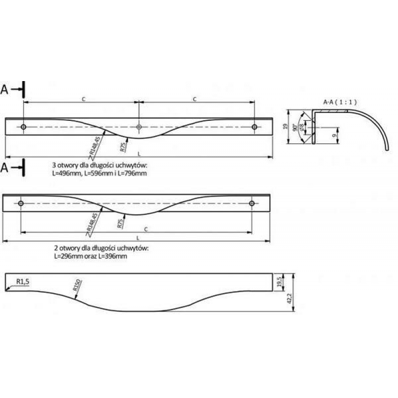 | Тип ручки | Профильная |