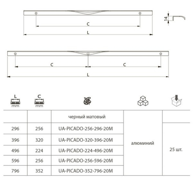 Ручка мебельная алюминиевая PICADO 256/296 черный матовый от бренда GTV, артикул: UA-PICADO-256-296-20M, категория Профильная ручка. Этот товар вы можете купить в магазине Prototip.by по хорошей цене.