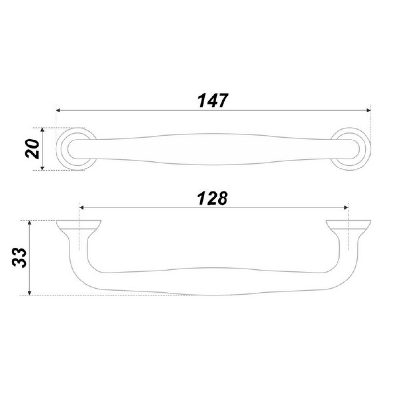 Оригинальность этой ручки не бросается в глаза, но и не остается незамеченной. Своеобразие формы этой ручки-скобы заключается в небольшом расширении к центру и многоуровневом дизайне оснований для крепления.