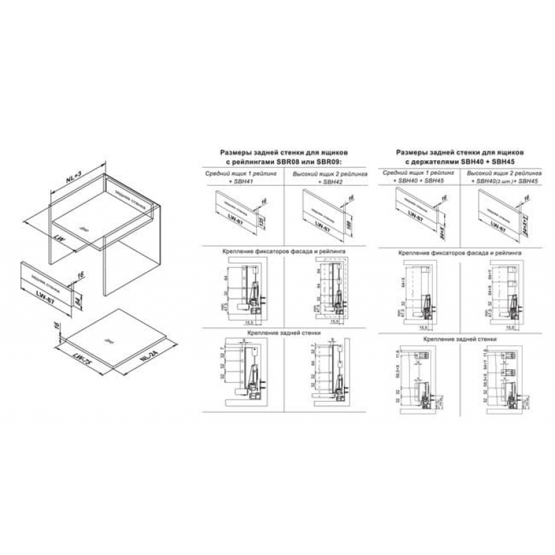 SBH42 – держатель задней стенки высокого мебельного выдвижного ящика с минимальной высотой проёма 224 мм. Продукт предназначен для надёжной фиксации задней стенки с металлическими боковинами выдвижного ящика и установки круглого (SBR08) или прямоугольного (SBR09) рейлинга. Держатели задней стенки, выполненные из стали, прослужат весь эксплуатационный срок, даже в условиях агрессивной кухонной среды. Держатель задней стенки для СТАРТ (Boyard) высокого с традиционными боковинами SBH42/GR от производителя Boyard, артикул: SBH42/GR, категория Системы выдвижения ящиков. Этот продукт вы можете приобрести в магазине Prototip.by по выгодной цене.