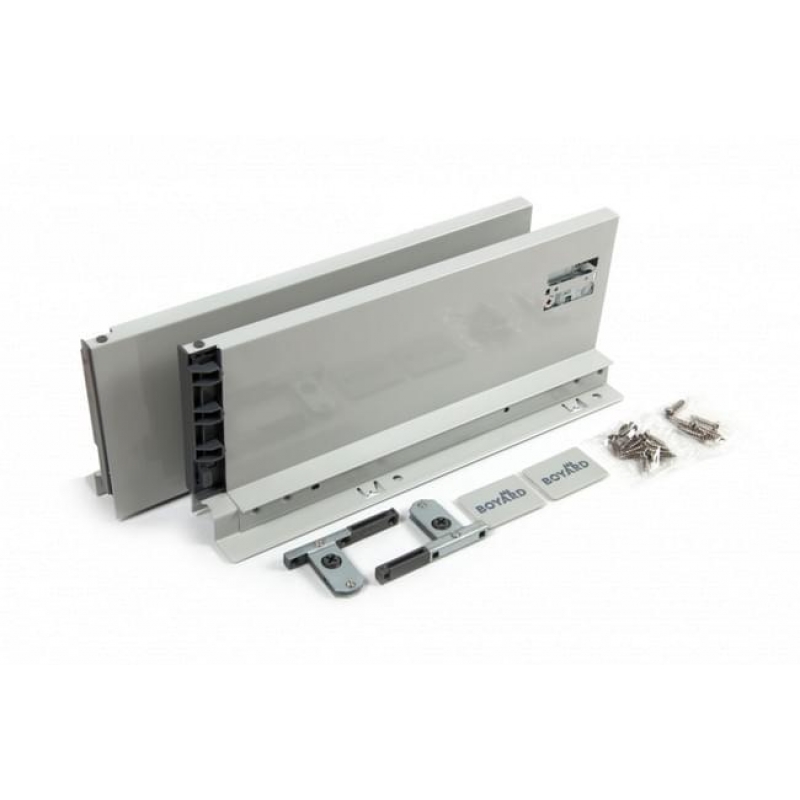 SBDW12 – прямые боковые стенки (левая и правая) для сборки мебельного ящика системы выдвижения СТАРТ средней высоты 116 мм для формирования выдвижного мебельного ящика с минимальной высотой проёма 147 мм . Прямые боковины отличает от традиционных эстетически более красивая лаконичная форма, которая, кроме этого, позволяет экономить внутреннее пространство ящика. Толщина прямых боковин – 12,8 мм . Также, выдвижной мебельный ящик с прямыми боковинами получается более глубоким и монолитным. Ящик со сплошными боковыми стенками, без рейлингов, более удобен для хранения разных по габаритам, форме и длине предметов. Более высокие боковины лучше удерживают ряды из плоских тарелок, крышек, не позволяя им заваливаться набок и падать в пространство между рейлингами и корпусом мебели. При открытии и закрытии модуля с высокими сплошными боковинами половники, скалки, шампуры и другая длинногабаритная утварь не будет попадать в пространство между рейлингами и корпусом мебели и, соответственно, не помешает его движению. Боковины с держателями задней стенки и фиксаторами фасада выполняют защитно-декоративную функцию, а также соединяют между собой основные элементы выдвижного ящика: передняя фасадная панель, задняя стенка и дно. Кроме этого, боковины выполняют функцию регулировки фасада выдвижного ящика, функцию подвижного крепления выдвижного ящика к опорной направляющей скрытого монтажа DB8181, предварительно установленной на боковой стенке непосредственно мебельного изделия и защищают от непреднамеренного снятия при полном выдвижении механизма. Боковые стенки SBDW12, покрытые порошковой эмалью методом распыления с последующей сушкой при температуре 90 градусов, прослужат весь эксплуатационный срок, даже в условиях агрессивной кухонной среды. В комплект также входят декоративные заглушки с логотипом BOYARD. Прямые боковины для среднего ящика представлены в вариантах монтажной длины от 300 до 500 мм в трёх популярных цветах: графитовый, белый и серый . Для сборки выдвижного мебельного ящика с помощью боковин SBDW12 необходимо самостоятельно изготовить фасад, заднюю стенку и дно ящика с учетом собственных пожеланий и потребностей по ширине и высоте готового ящика. Высоту выдвижного мебельного ящика можно увеличить, используя прямоугольные рейлинги SBR09 и держатели рейлинга SBH40, в том количестве, ящик какой высоты вам необходим. Внимание! Важная информация! Групповая коробка боковых стенок SBDW12 включает 10 комплектов боковин, а также 10 отдельных пакетов с держателями фасада, декоративными заглушками и необходимым крепежом. В случае приобретения боковых стенок в розницу следует обязательно помнить, что для каждого приобретённого комплекта боковин вам обязательно должны положить пакетик с комплектующими и крепежом. Обязательно проверяйте наличие необходимого количества пакетиков с комплектующими при получении товара, а также не забывайте о них при распаковке вашего заказа. Прямые боковые стенки СТАРТ (Boyard) средней высоты SBDW12/GR/300 от производителя Boyard, артикул: SBDW12/GR/300, каталог Системы выдвижения ящиков. Этот продукт вы можете приобрести в магазине ПрототиП по прекрасной цене.