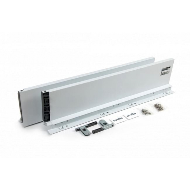 SBDW12 – прямые боковые стенки (левая и правая) для сборки мебельного ящика системы выдвижения СТАРТ средней высоты 116 мм для формирования выдвижного мебельного ящика с минимальной высотой проёма 147 мм . Прямые боковины отличает от традиционных эстетически более красивая лаконичная форма, которая, кроме этого, позволяет экономить внутреннее пространство ящика. Толщина прямых боковин – 12,8 мм . Также, выдвижной мебельный ящик с прямыми боковинами получается более глубоким и монолитным. Ящик со сплошными боковыми стенками, без рейлингов, более удобен для хранения разных по габаритам, форме и длине предметов. Более высокие боковины лучше удерживают ряды из плоских тарелок, крышек, не позволяя им заваливаться набок и падать в пространство между рейлингами и корпусом мебели. При открытии и закрытии модуля с высокими сплошными боковинами половники, скалки, шампуры и другая длинногабаритная утварь не будет попадать в пространство между рейлингами и корпусом мебели и, соответственно, не помешает его движению. Боковины с держателями задней стенки и фиксаторами фасада выполняют защитно-декоративную функцию, а также соединяют между собой основные элементы выдвижного ящика: передняя фасадная панель, задняя стенка и дно. Кроме этого, боковины выполняют функцию регулировки фасада выдвижного ящика, функцию подвижного крепления выдвижного ящика к опорной направляющей скрытого монтажа DB8181, предварительно установленной на боковой стенке непосредственно мебельного изделия и защищают от непреднамеренного снятия при полном выдвижении механизма. Боковые стенки SBDW12, покрытые порошковой эмалью методом распыления с последующей сушкой при температуре 90 градусов, прослужат весь эксплуатационный срок, даже в условиях агрессивной кухонной среды. В комплект также входят декоративные заглушки с логотипом BOYARD. Прямые боковины для среднего ящика представлены в вариантах монтажной длины от 300 до 500 мм в трёх популярных цветах: графитовый, белый и серый . Для сборки выдвижного мебельного ящика с помощью боковин SBDW12 необходимо самостоятельно изготовить фасад, заднюю стенку и дно ящика с учетом собственных пожеланий и потребностей по ширине и высоте готового ящика. Высоту выдвижного мебельного ящика можно увеличить, используя прямоугольные рейлинги SBR09 и держатели рейлинга SBH40, в том количестве, ящик какой высоты вам необходим. Внимание! Важная информация! Групповая коробка боковых стенок SBDW12 включает 10 комплектов боковин, а также 10 отдельных пакетов с держателями фасада, декоративными заглушками и необходимым крепежом. В случае приобретения боковых стенок в розницу следует обязательно помнить, что для каждого приобретённого комплекта боковин вам обязательно должны положить пакетик с комплектующими и крепежом. Обязательно проверяйте наличие необходимого количества пакетиков с комплектующими при получении товара, а также не забывайте о них при распаковке вашего заказа. Прямые боковые стенки СТАРТ (Boyard) средней высоты SBDW12/W/500 от бренда Boyard, артикул: SBDW12/W/500, раздел Системы выдвижения ящиков. Этот продукт вы можете приобрести в магазине ПрототиП, ресурс Prototip.by по недорогой цене.