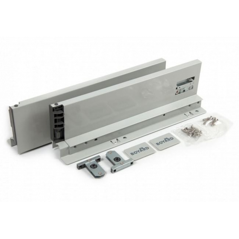 SBDW11 – прямые боковые стенки (левая и правая) для сборки мебельного ящика системы выдвижения СТАРТ стандартной высоты 86 мм для формирования выдвижного мебельного ящика с минимальной высотой проёма 115 мм . Прямые боковины отличает от традиционных эстетически более красивая лаконичная форма, которая также позволяет экономить внутреннее пространство ящика. Толщина прямых боковин – 12,8 мм . Боковины с держателями задней стенки и фиксаторами фасада выполняют защитно-декоративную функцию, а также соединяют между собой основные элементы выдвижного ящика: передняя фасадная панель, задняя стенка и дно. Кроме этого, боковины выполняют функцию регулировки фасада выдвижного ящика, функцию подвижного крепления выдвижного ящика к опорной направляющей скрытого монтажа DB8181, предварительно установленной на боковой стенке непосредственно мебельного изделия и защищают от непреднамеренного снятия при полном выдвижении механизма. Боковые стенки SBDW11, покрытые порошковой эмалью методом распыления с последующей сушкой при температуре 90 градусов, прослужат весь эксплуатационный срок, даже в условиях агрессивной кухонной среды. В комплект также входят декоративные заглушки с логотипом BOYARD. Прямые боковины для стандартного ящика представлены в вариантах монтажной длины от 300 до 500 мм в трёх популярных цветах: графитовый, белый и серый . Для сборки выдвижного мебельного ящика с помощью боковин SBDW11 необходимо самостоятельно изготовить фасад, заднюю стенку и дно ящика с учетом собственных пожеланий и потребностей по ширине и высоте готового ящика. Высоту выдвижного мебельного ящика можно увеличить, используя прямоугольные рейлинги SBR09 и держатели рейлинга SBH40, в том количестве, ящик какой высоты вам необходим. Внимание! Важная информация! Групповая коробка боковых стенок SBDW11 включает 10 комплектов боковин, а также 10 отдельных пакетов с держателями фасада, декоративными заглушками и необходимым крепежом. В случае приобретения боковых стенок в розницу следует обязательно помнить, что для каждого приобретённого комплекта боковин вам обязательно должны положить пакетик с комплектующими и крепежом. Обязательно проверяйте наличие необходимого количества пакетиков с комплектующими при получении товара, а также не забывайте о них при распаковке вашего заказа. Прямые боковые стенки СТАРТ (Boyard) стандартной высоты SBDW11/GR/300 от производителя Boyard, артикул: SBDW11/GR/300, категория Системы выдвижения ящиков. Этот товар вы можете купить в магазине ПрототиП по выгодной цене.
