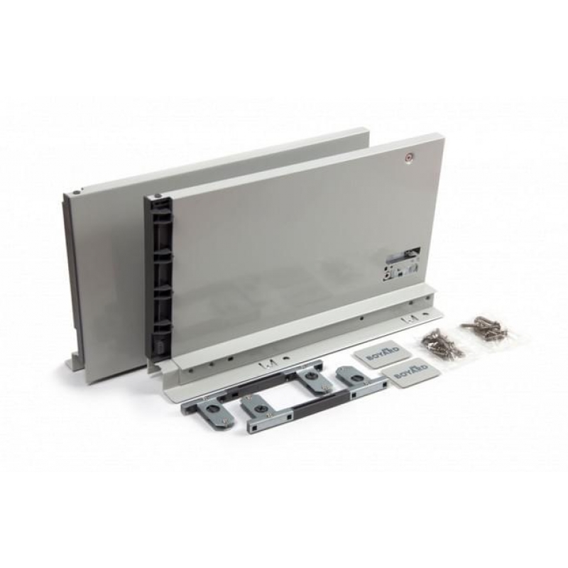 SBDW13 – прямые боковые стенки (левая и правая) для сборки мебельного высокого ящика системы выдвижения СТАРТ высотой 167 мм с минимальной высотой проёма 198 мм . Прямые боковины отличает от традиционных эстетически более красивая лаконичная форма, которая, кроме этого позволяет экономить внутреннее пространство ящика. Толщина прямых боковин – 12,8 мм . Также, выдвижной мебельный ящик с прямыми боковинами получается более глубоким и монолитным. Ящик со сплошными боковыми стенками, без рейлингов, более удобен для хранения разных по габаритам, форме и длине предметов. Более высокие боковины лучше удерживают ряды из плоских тарелок, крышек, не позволяя им заваливаться на бок и падать в пространство между рейлингами и корпусом мебели. При открытии и закрытии модуля с высокими сплошными боковинами половники, скалки, шампуры и другая длинногабаритная утварь не будет попадать в пространство между рейлингами и корпусом мебели и, соответственно, не помешает его движению. Боковины с держателями задней стенки и фиксаторами фасада выполняют защитно-декоративную функцию, а также соединяют между собой основные элементы выдвижного ящика: передняя фасадная панель, задняя стенка и дно. Кроме этого, боковины выполняют функцию регулировки фасада выдвижного ящика, функцию подвижного крепления выдвижного ящика к опорной направляющей скрытого монтажа DB8181, предварительно установленной на боковой стенке непосредственно мебельного изделия и защищают от непреднамеренного снятия при полном выдвижении механизма. Боковые стенки SBDW13, покрытые порошковой эмалью методом распыления с последующей сушкой при температуре 90 градусов, прослужат весь эксплуатационный срок, даже в условиях агрессивной кухонной среды. В комплект также входят декоративные заглушки с логотипом BOYARD. Прямые боковины для высокого ящика представлены в вариантах монтажной длины от 300 до 500 мм в трёх популярных цветах: графитовый, белый и серый . Для сборки выдвижного мебельного ящика с помощью боковин SBDW13 необходимо самостоятельно изготовить фасад, заднюю стенку и дно ящика с учетом собственных пожеланий и потребностей по ширине и высоте готового ящика. Высоту выдвижного мебельного ящика можно увеличить, используя прямоугольные рейлинги SBR09 и держатели рейлинга SBH40, в том количестве, ящик какой высоты вам необходим. Внимание! Важная информация! Групповая коробка боковых стенок SBDW13 включает 5 комплектов боковин, а также 5 отдельных пакетов с держателями фасада, декоративными заглушками и необходимым крепежом. В случае приобретения боковых стенок в розницу следует обязательно помнить, что для каждого приобретённого комплекта боковин вам обязательно должны положить пакетик с комплектующими и крепежом. Обязательно проверяйте наличие необходимого количества пакетиков с комплектующими при получении товара, а также не забывайте о них при распаковке вашего заказа. Прямые боковые стенки СТАРТ (Boyard) высокие SBDW13/GR/300 от производителя Boyard, артикул: SBDW13/GR/300, раздел Системы выдвижения ящиков. Этот продукт вы можете купить или заказать в магазине ПрототиП по выгодной цене.