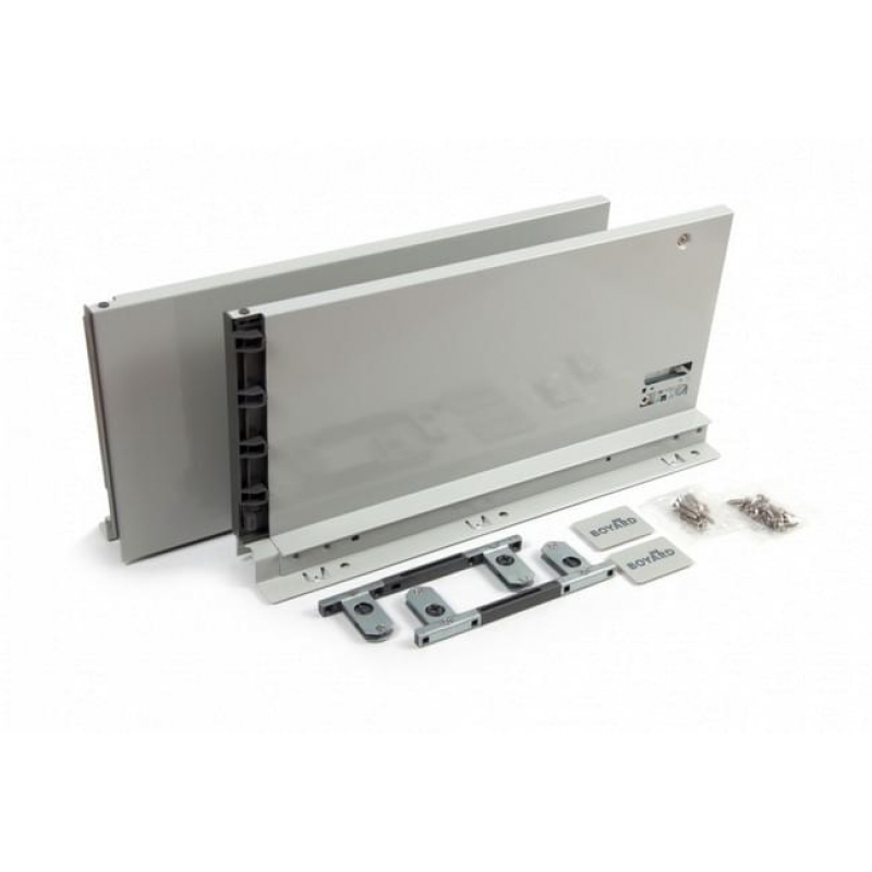 SBDW13 – прямые боковые стенки (левая и правая) для сборки мебельного высокого ящика системы выдвижения СТАРТ высотой 167 мм с минимальной высотой проёма 198 мм . Прямые боковины отличает от традиционных эстетически более красивая лаконичная форма, которая, кроме этого позволяет экономить внутреннее пространство ящика. Толщина прямых боковин – 12,8 мм . Также, выдвижной мебельный ящик с прямыми боковинами получается более глубоким и монолитным. Ящик со сплошными боковыми стенками, без рейлингов, более удобен для хранения разных по габаритам, форме и длине предметов. Более высокие боковины лучше удерживают ряды из плоских тарелок, крышек, не позволяя им заваливаться на бок и падать в пространство между рейлингами и корпусом мебели. При открытии и закрытии модуля с высокими сплошными боковинами половники, скалки, шампуры и другая длинногабаритная утварь не будет попадать в пространство между рейлингами и корпусом мебели и, соответственно, не помешает его движению. Боковины с держателями задней стенки и фиксаторами фасада выполняют защитно-декоративную функцию, а также соединяют между собой основные элементы выдвижного ящика: передняя фасадная панель, задняя стенка и дно. Кроме этого, боковины выполняют функцию регулировки фасада выдвижного ящика, функцию подвижного крепления выдвижного ящика к опорной направляющей скрытого монтажа DB8181, предварительно установленной на боковой стенке непосредственно мебельного изделия и защищают от непреднамеренного снятия при полном выдвижении механизма. Боковые стенки SBDW13, покрытые порошковой эмалью методом распыления с последующей сушкой при температуре 90 градусов, прослужат весь эксплуатационный срок, даже в условиях агрессивной кухонной среды. В комплект также входят декоративные заглушки с логотипом BOYARD. Прямые боковины для высокого ящика представлены в вариантах монтажной длины от 300 до 500 мм в трёх популярных цветах: графитовый, белый и серый . Для сборки выдвижного мебельного ящика с помощью боковин SBDW13 необходимо самостоятельно изготовить фасад, заднюю стенку и дно ящика с учетом собственных пожеланий и потребностей по ширине и высоте готового ящика. Высоту выдвижного мебельного ящика можно увеличить, используя прямоугольные рейлинги SBR09 и держатели рейлинга SBH40, в том количестве, ящик какой высоты вам необходим. Внимание! Важная информация! Групповая коробка боковых стенок SBDW13 включает 5 комплектов боковин, а также 5 отдельных пакетов с держателями фасада, декоративными заглушками и необходимым крепежом. В случае приобретения боковых стенок в розницу следует обязательно помнить, что для каждого приобретённого комплекта боковин вам обязательно должны положить пакетик с комплектующими и крепежом. Обязательно проверяйте наличие необходимого количества пакетиков с комплектующими при получении товара, а также не забывайте о них при распаковке вашего заказа. Прямые боковые стенки СТАРТ (Boyard) высокие SBDW13/GR/350 от бренда Boyard, артикул: SBDW13/GR/350, категория Системы выдвижения ящиков. Этот товар вы можете купить в магазине Prototip.by по недорогой цене.